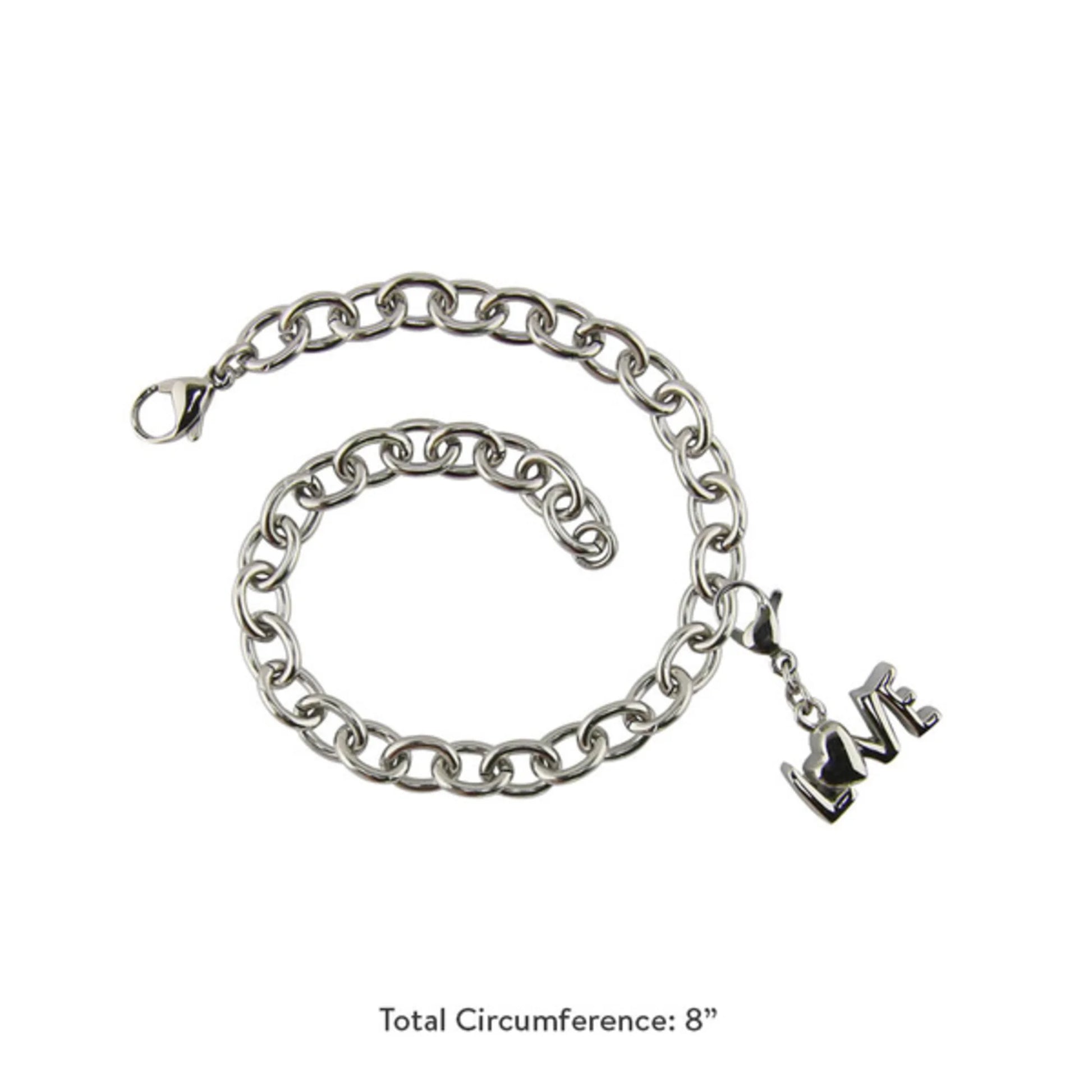 Charm Bracelet with Love Charm Pewter - includes 8" bracelet