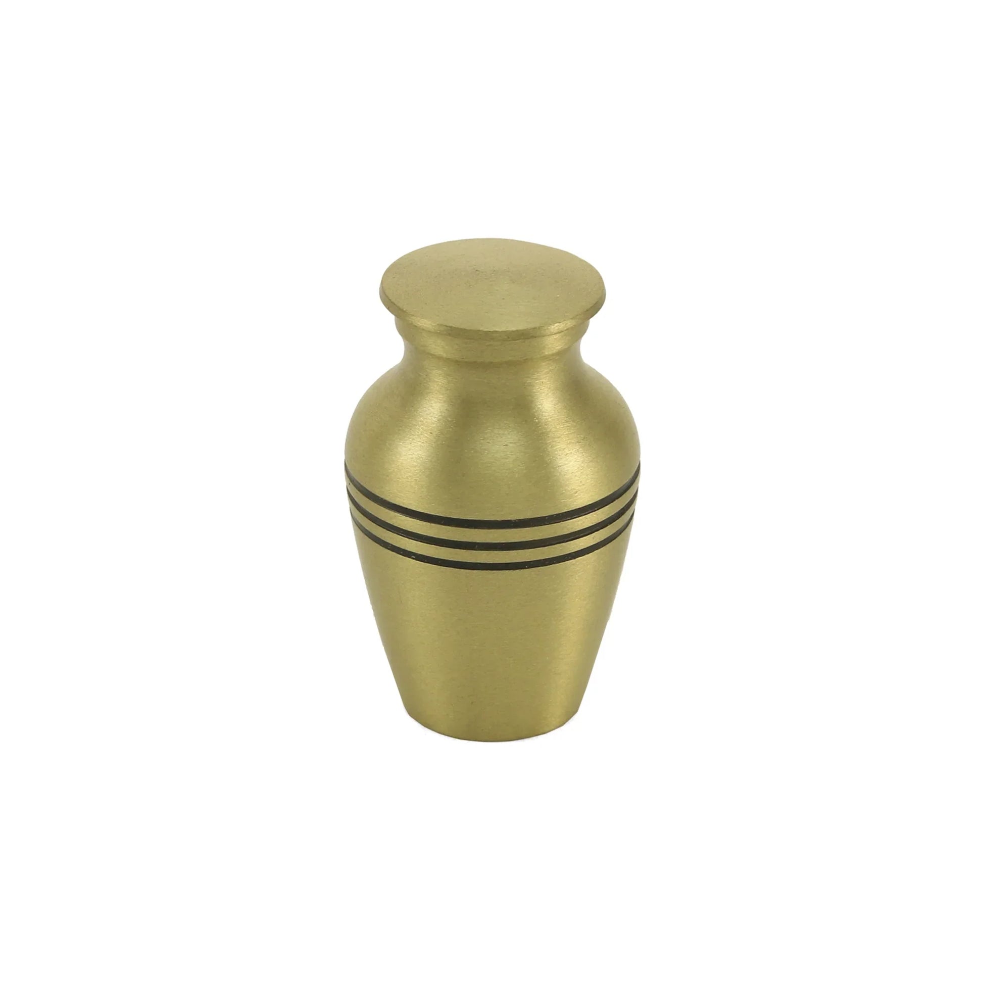 This small keepsake urn offers a meaningful way to hold a tiny portion of a loved one's ashes. Crafted from durable metal with a rich metallic finish, it features a warm bronze-tone finish that adds quiet elegance to your memorial space. Its compact size is ideal for keeping on a bedside table, small shelf, or within a family memorial display, or for sharing among close family members. A threaded lid helps keep the contents safely contained over time. It arrives with a soft velvet bag for protective storage and presentation. It can be paired with photos, candles, or other tokens of remembrance to create a small, deeply personal tribute. Its discreet size and thoughtful details offer a gentle source of comfort whenever you want to feel close.