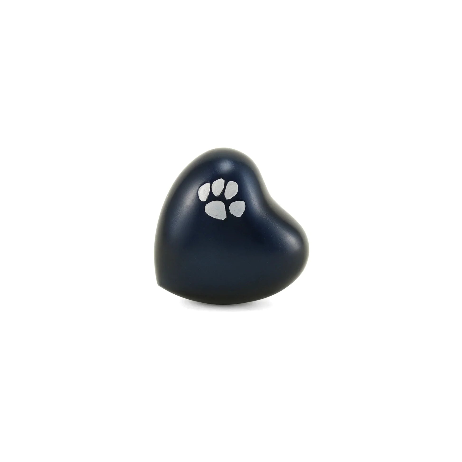 This small heart-shaped keepsake urn offers a tender way to keep a beloved pet close. Made of brass with a deep blue finish, it features a single pewter paw print resting on the upper curve that gently symbolize the paw prints they left on your heart. Its smooth, compact shape rests comfortably in your hand or on a bedside table, shelf, or small display stand. Inside there is room for a token portion of ashes, fur, or another tiny keepsake, secured by a threaded opening for added peace of mind. Personal details such as engraving or the way you arrange it among photos and mementos can make the memorial feel uniquely theirs. Having this tangible reminder nearby can offer comfort whenever you feel the need to hold their memory a little closer.
