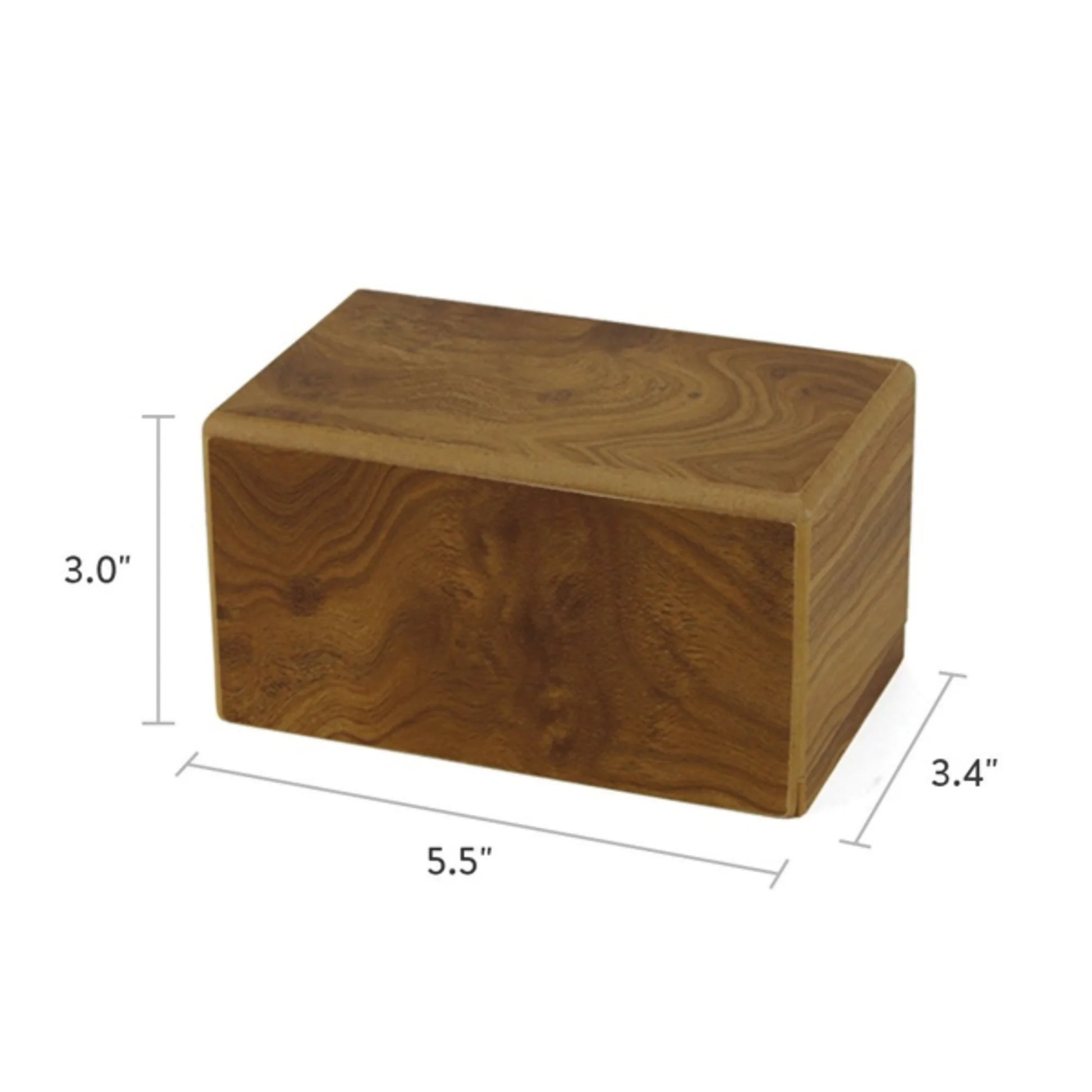 This box-style pet urn offers a simple, comforting way to keep a cherished companion's ashes close. Made from durable MDF with a warm natural woodgrain finish, it has a straightforward silhouette that blends easily with many styles of home décor. The interior holds about 25 cubic inches of ashes, making it a tender keepsake for smaller pets or a shared portion of remains. Its compact footprint, at approximately 3 x 5.5 x 3.4 inches, rests neatly on a shelf, end table, or special memorial space without feeling intrusive.