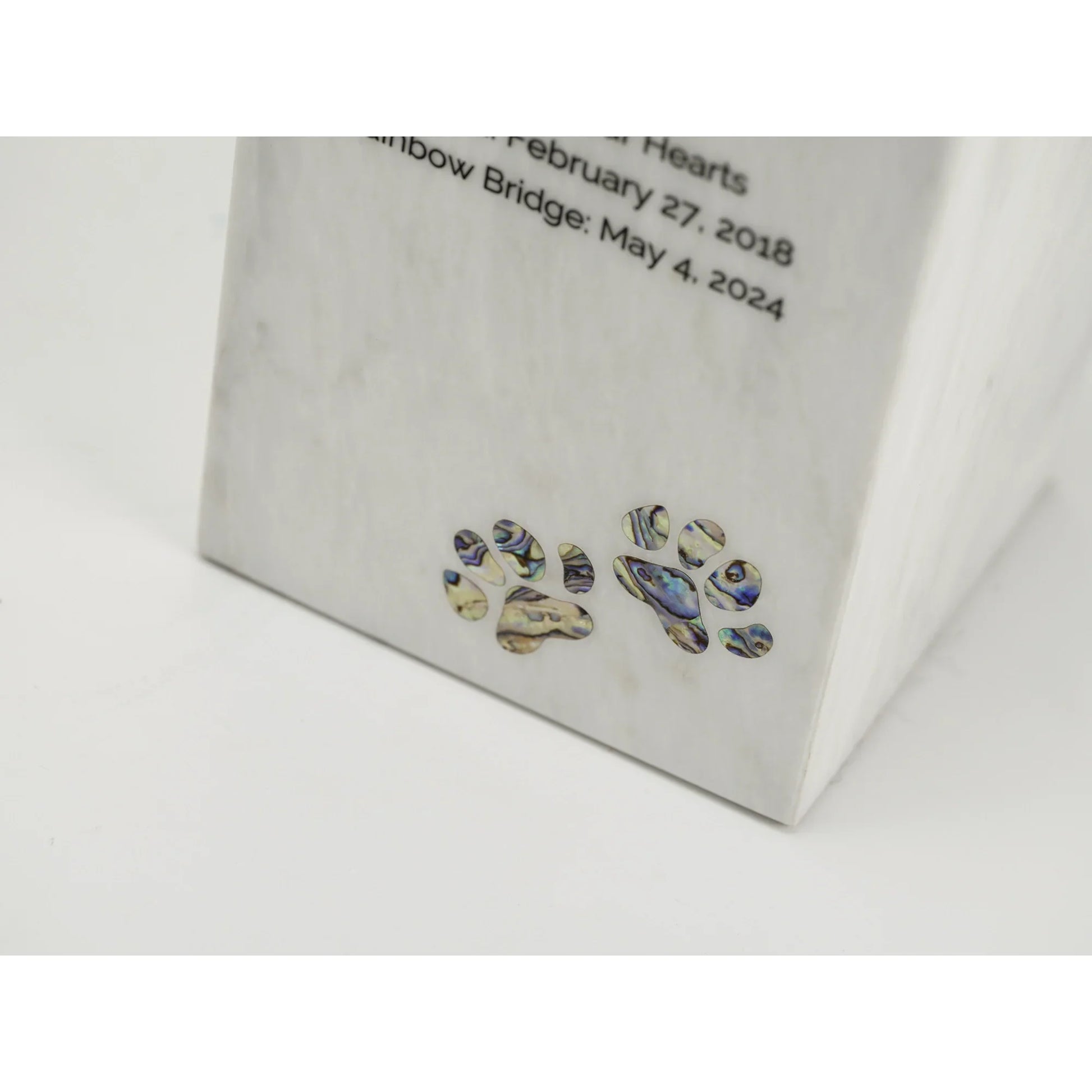 Monumental Memorials Pet Paws Pearl Inlay White, Extra Small Urn