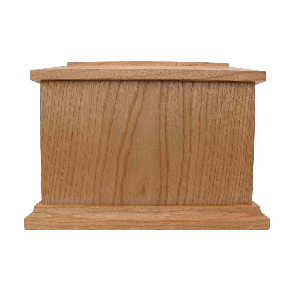These cherry urns are made from North American cherry hardwood. The wood has a warm, reddish-brown color that can get a little deeper over time. Each urn is hand sanded until it feels smooth to the touch. We apply a clear coat finish to help protect the wood and show off its natural beauty. Cherry has a classic look that feels rich and comforting.